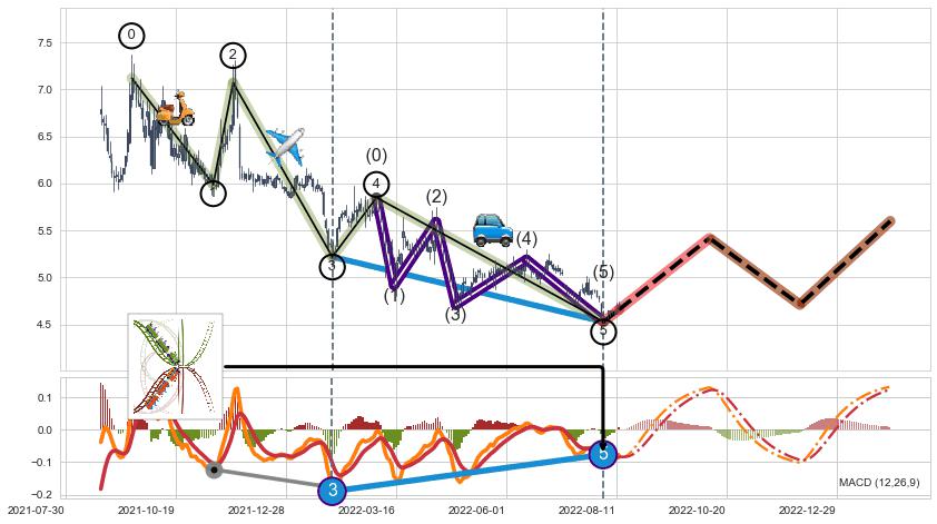 ➣ 波浪理论:猜想即将止跌 → 上涨 →【拐点】浪5临近 → 大趋势均值回复