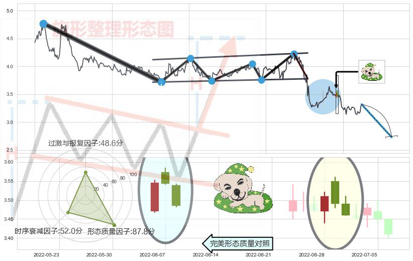 ➢ 🕰 价格走势在2022-06-28至2022-06-30期间形成黄昏之星(夜星),残存影响值:-5.07