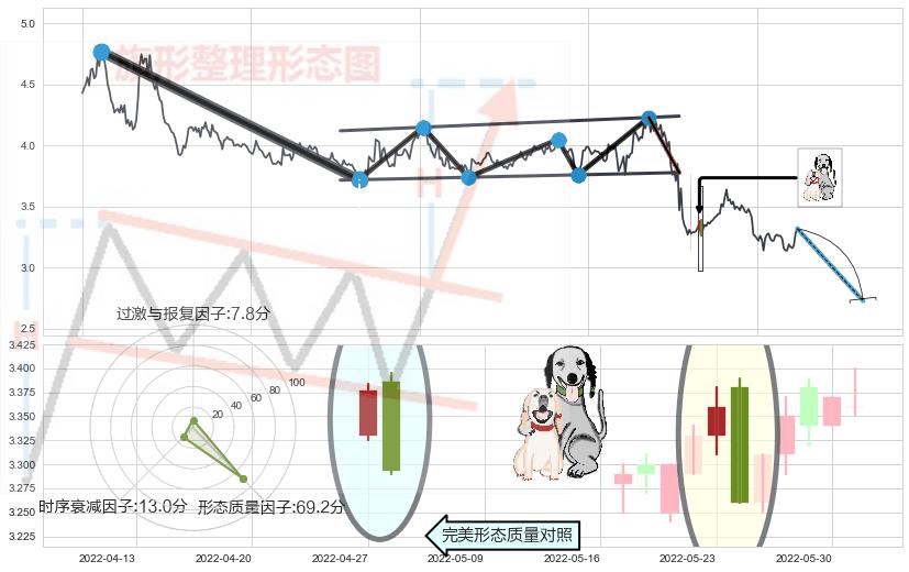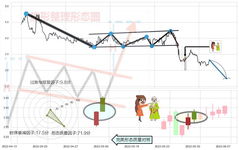 ➢ 阴包阳形态 🔜 升旗形支撑破位转换阻力下跌 综合量化分数:46.50 【中性】