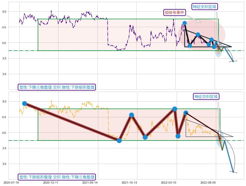 ➢ 下降三角整理属【短级别信号事件】下跌矩形整理属【长级别信号事件】长短周期组合信号事件, 短长事件长度比16.84%