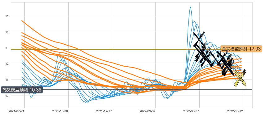 ➣ 90小时均线于(2022-07-20: 11.78)形成【死叉】基于【死叉历史模型】预测死叉后最低波谷价格: 9.73, 死叉后最低价格10.68,尚未达到预测最低波谷价格, 预期继续下跌