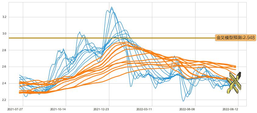➣ 40小时均线于(2022-08-11: 2.404)形成【金叉】基于【金叉历史模型】预测金叉后最高波峰价格: 2.862, 金叉后最高价格2.510,尚未达到预测最高波峰价格, 预期继续上涨