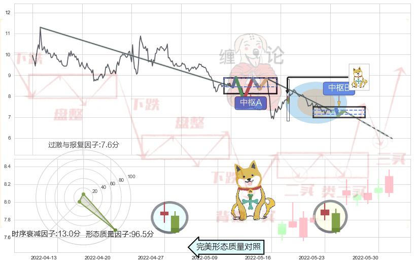 ➣ 下跌镊子线(n形磁铁) + 缠论中枢点破位中枢B支撑下拉信号叠加后【目标达成率】中等,【看空】信号叠加【存续影响中等】