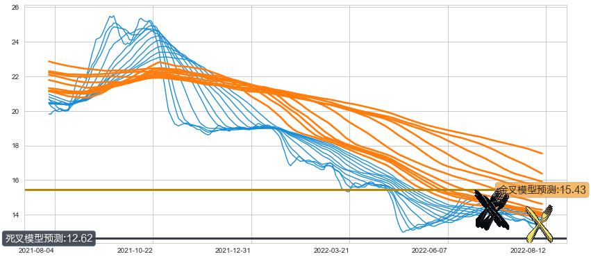 ➢ 60小时均线于(2022-07-11: 14.18)形成【死叉】基于【死叉历史模型】预测死叉后最低波谷价格: 12.27, 死叉后最低价格13.06,尚未达到预测最低波谷价格, 预期继续下跌