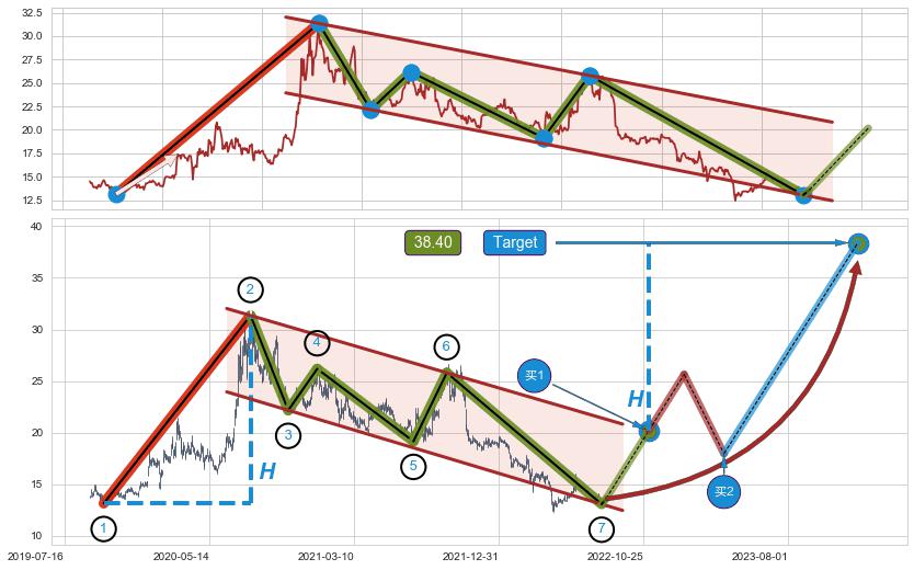 ➢ AI预测: 假定反转如期而至,第❸价格目标位置(2023-07-05, 31.35)