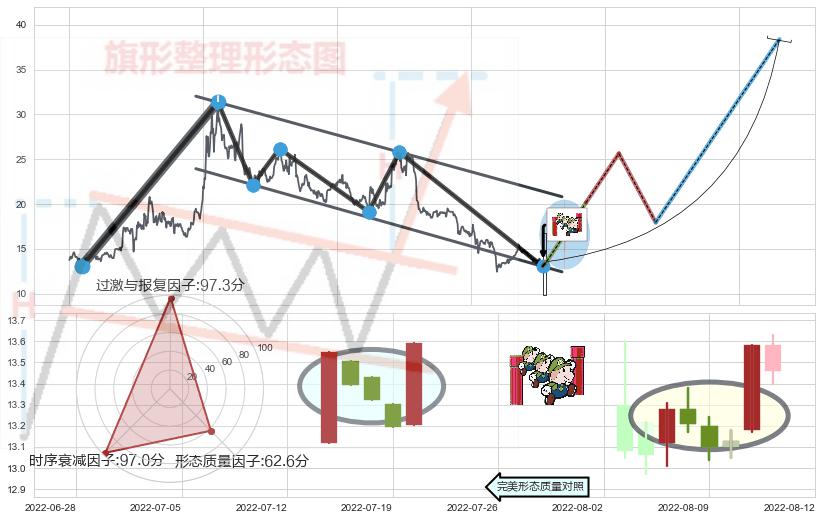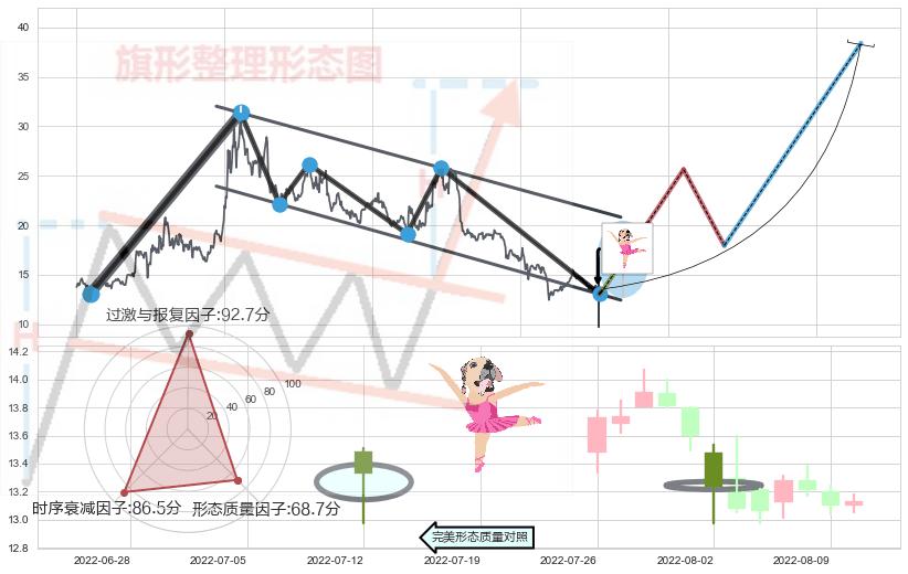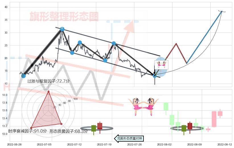 ➢ 中流砥柱形态 🔜 降旗形临近阻力猜想转换支撑上涨 综合量化分数:53.32 【中性】