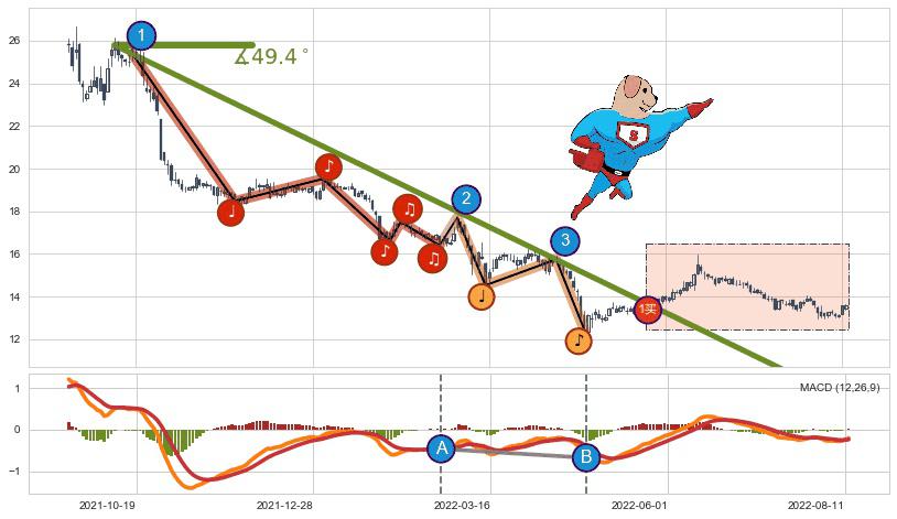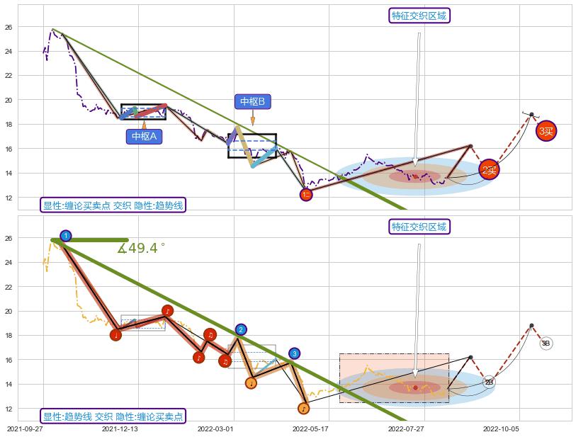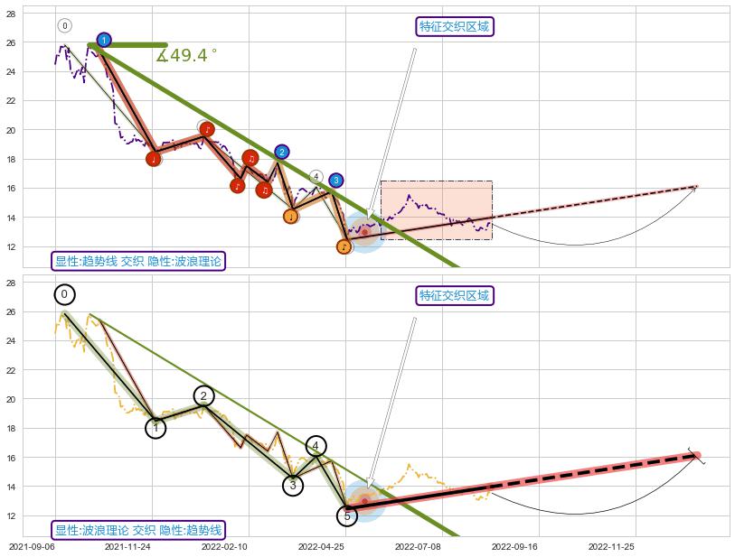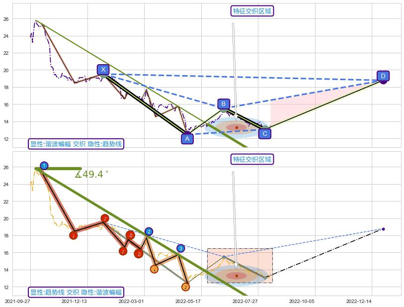 ➣ D点拟合预测价格18.78,距离最后交易收盘价格13.58相差 +38.32%