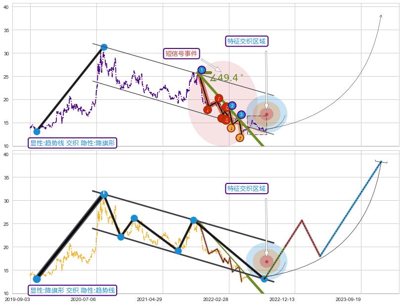 ➢ 趋势线属【短级别信号事件】降旗形属【长级别信号事件】长短周期组合信号事件, 短长事件长度比21.87%