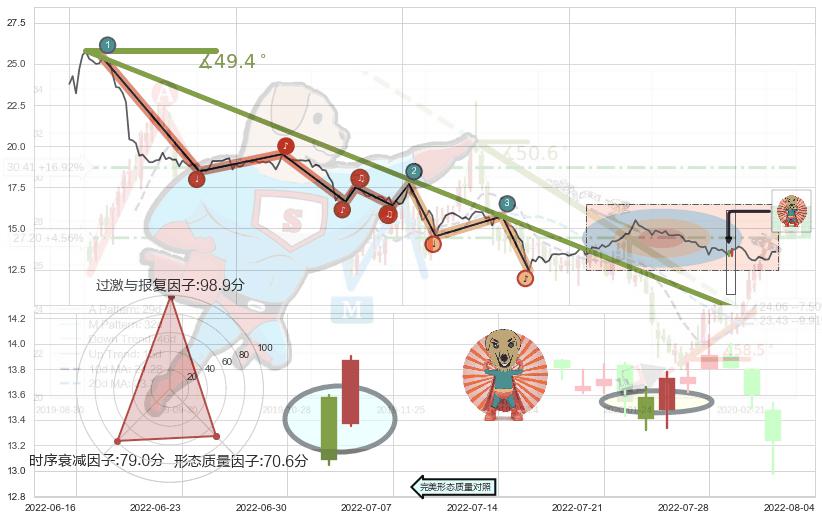 ♘ 阻力价格位25.80,可信任强度73.43%,距离最后交易2022-08-12形成的收盘价格13.58相差 +89.99%