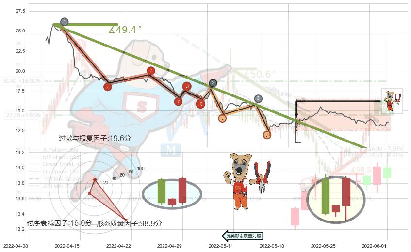 从2021-10-11至2022-05-25,共包含152个交易日,阶段股价下跌-60.74%,阶段股价变动位移路程比: 1 : 3,下跌趋势角度: 49.4
