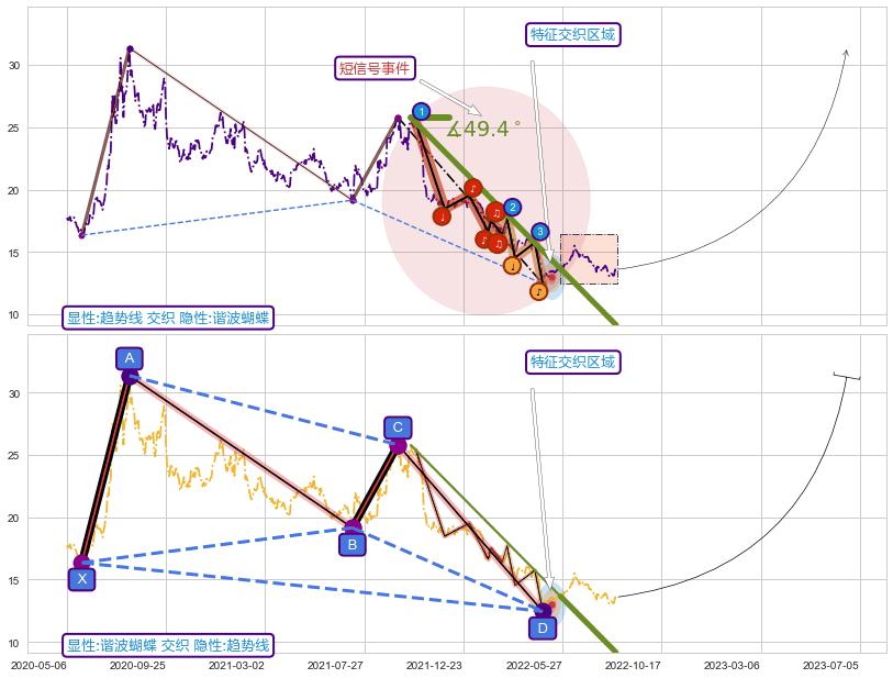 ➢ 趋势线属【短级别信号事件】谐波蝴蝶属【长级别信号事件】长短周期组合信号事件, 短长事件长度比32.62%