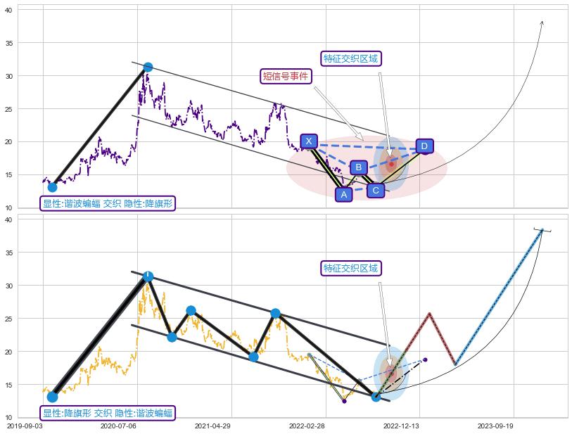 ➢ 谐波蝙蝠属【短级别信号事件】降旗形属【长级别信号事件】长短周期组合信号事件, 短长事件长度比21.44%