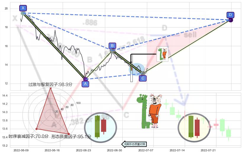 ➢ 中流砥柱形态 🔜 谐波蝙蝠c拐点上涨支撑 综合量化分数:53.61 【偏多】