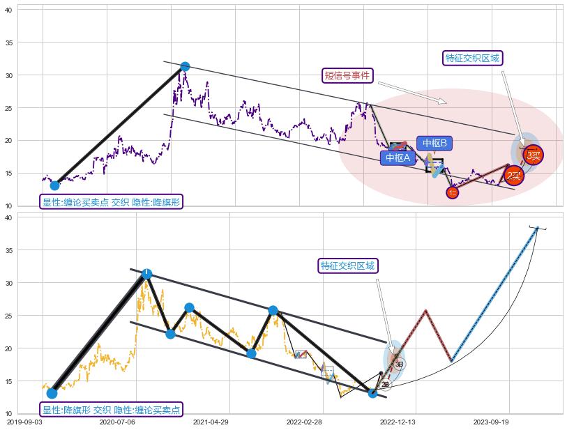 ➣ 缠论买卖点:下降缠:猜想2买趋势延续,蓄力上涨至3买(大周期趋势均值回复中的小周期趋势跟踪)