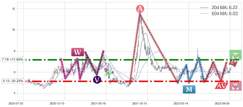 ♘ 阻力价格位7.18,可信任强度88.72%,距离最后交易2022-08-12形成的收盘价格6.43相差 +11.63%