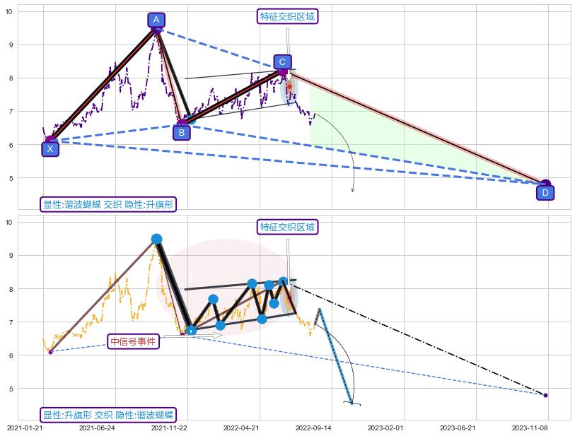 ➣ 未完成【蝴蝶】形态起点X: 2021-02-04, 已到达C点: 2022-06-10, 预测最终D点: 2023-11-02, 共680交易日