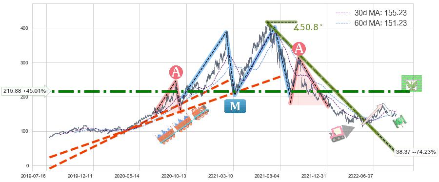 ♘ 阻力价格位215.88,可信任强度93.69%,距离最后交易2022-08-12形成的收盘价格148.87相差 +45.01%