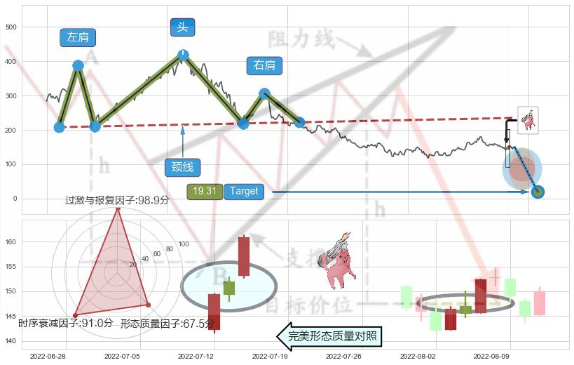➢ 锤头线(锤子线) 🔜 头肩顶临近target支撑拐点上涨 综合量化分数:57.47 【偏多】