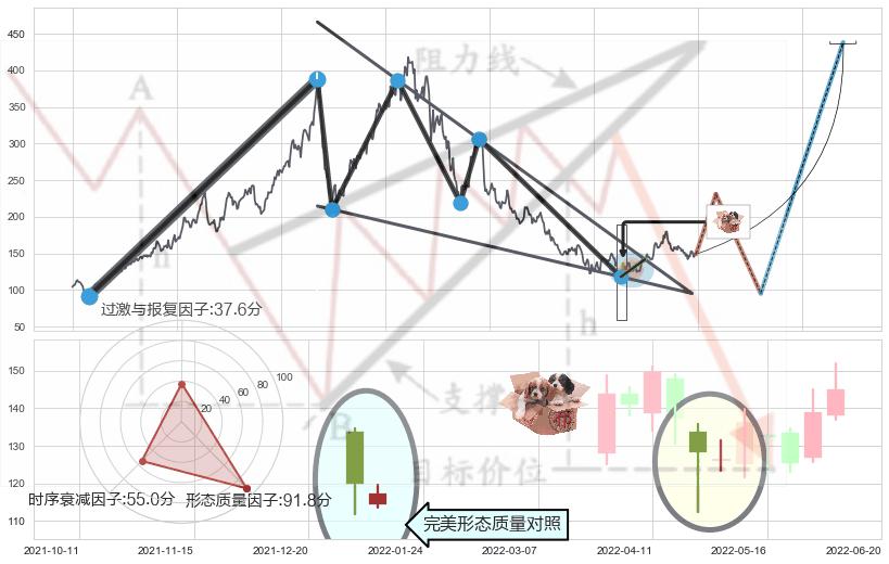 ➢ 🕰 价格走势在2022-06-15至2022-06-16期间形成上涨螺旋桨形态,残存影响值:4.08