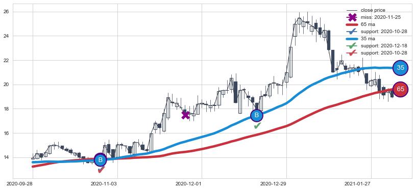 ➢ 最优均线组合共正确确认支撑阻力信号7处,正确确认率 70.00%