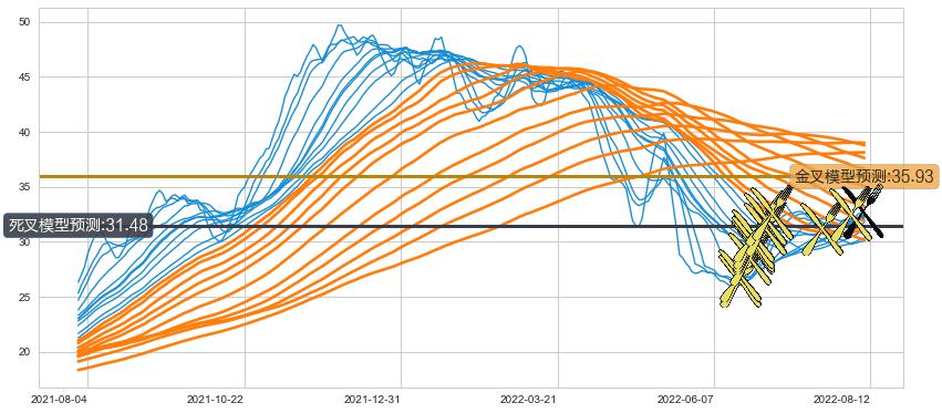 ➢ 10小时均线于(2022-08-11: 32.62)形成【死叉】基于【死叉历史模型】预测死叉后最低波谷价格: 31.48, 死叉后最低价格32.65,已经下跌超出预测最低波谷价格, 预期反弹