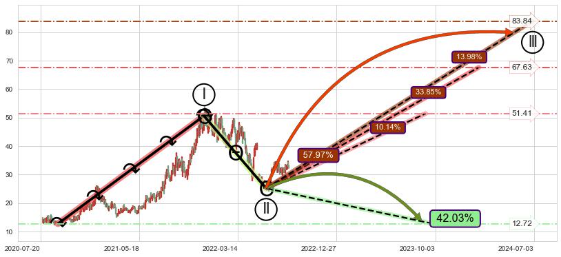 ♘ 支撑价格位14.55,可信任强度72.87%,距离最后交易2022-08-12形成的收盘价格32.65相差 -55.44%