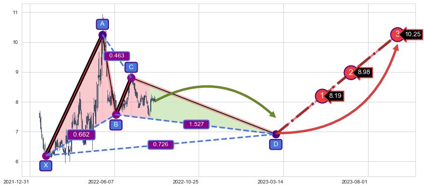 ➣ 未完成【伽利】形态起点X: 2022-01-28, 已到达C点: 2022-07-05, 预测最终D点: 2023-03-01, 共266交易日
