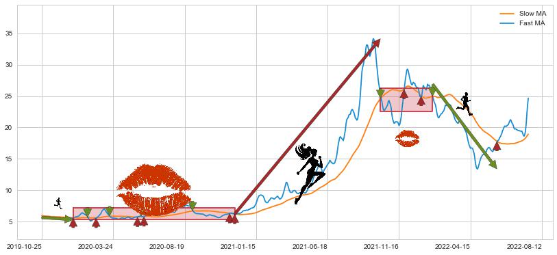 2022-01-21至2022-06-13 慢线与快线呈空头排列, 慢线与快线接触少,无缠绕