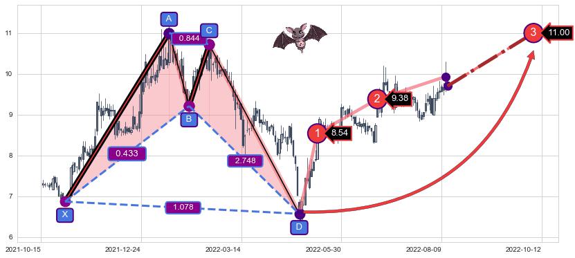 ➣ 已完成【蝙蝠】形态起点X: 2021-11-02, 终点D: 2022-04-26, 共118交易日