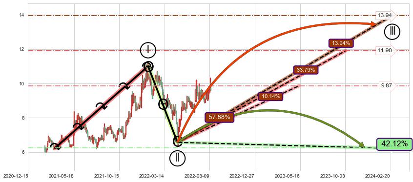 ➢ 2022-05-12到达第❶价格目标位置8.54