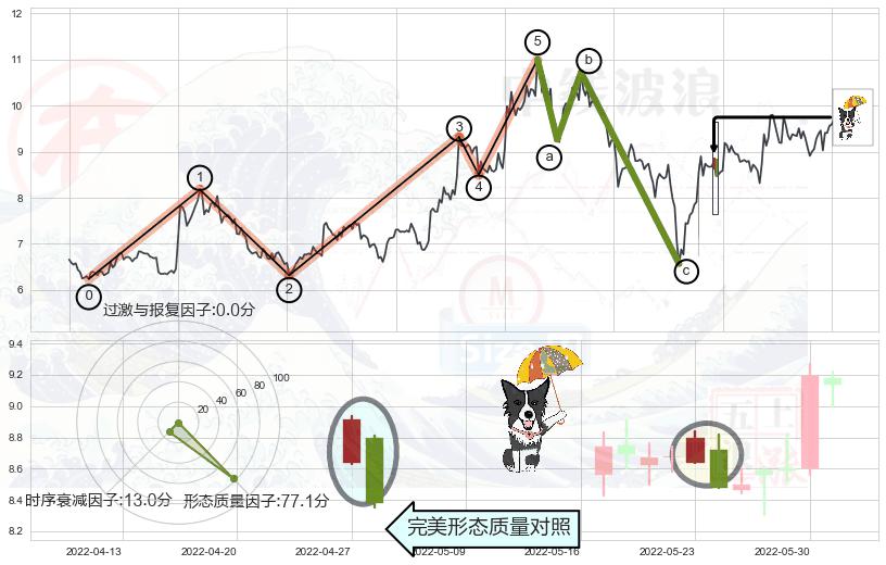 ➣ 锤头线(锤子线) + 波浪理论c点回调终止反转上涨信号叠加后【反向回撤率】偏高,【看多】信号叠加【存续影响降权】
