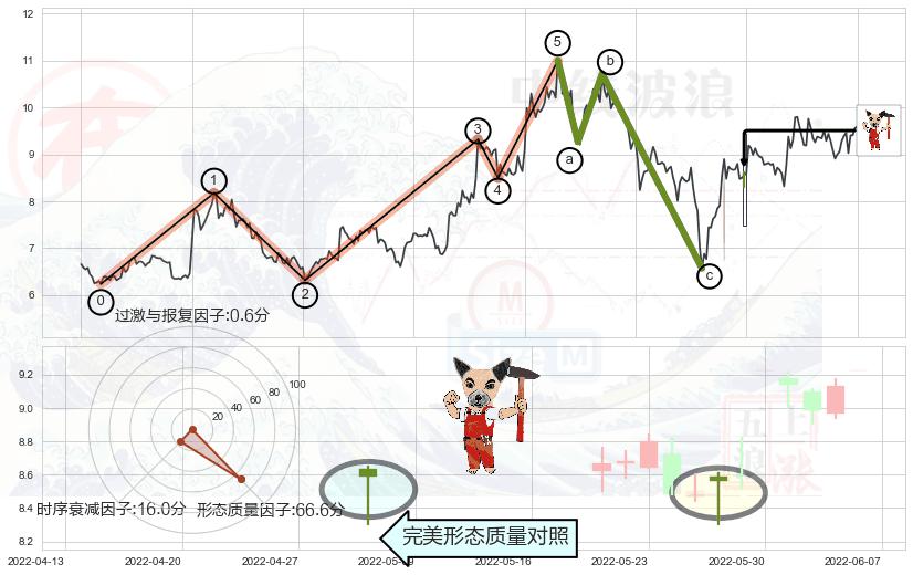 ➢ 锤头线(锤子线) + 波浪理论c点回调终止反转上涨信号叠加后【信号初始稳固度】中等,【看多】信号叠加【可信度影响中等】