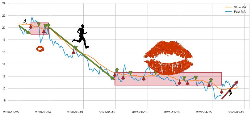 2021-01-13至2022-06-01 慢线与快线多次接触,存在上下穿越,有缠绕