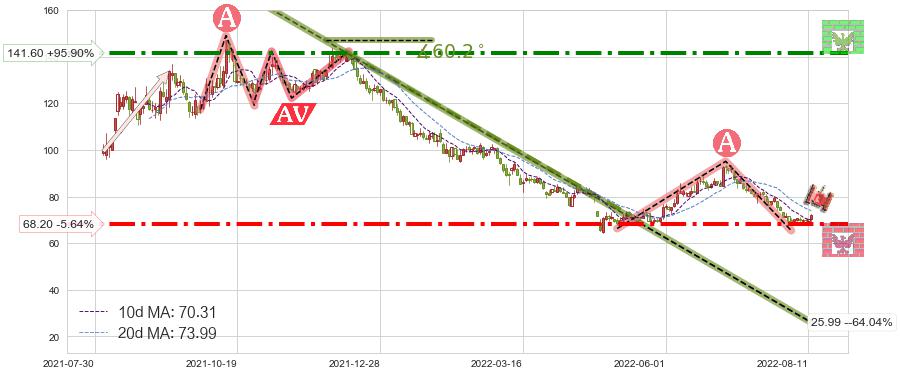 ♘ 支撑价格位68.20,可信任强度74.09%,距离最后交易2022-08-12形成的收盘价格72.28相差 -5.64%