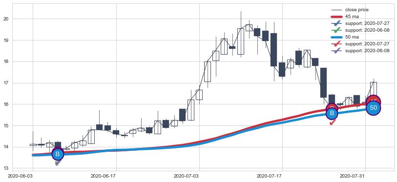 ➢ 最优均线组合共正确确认支撑阻力信号6处,正确确认率 85.71%