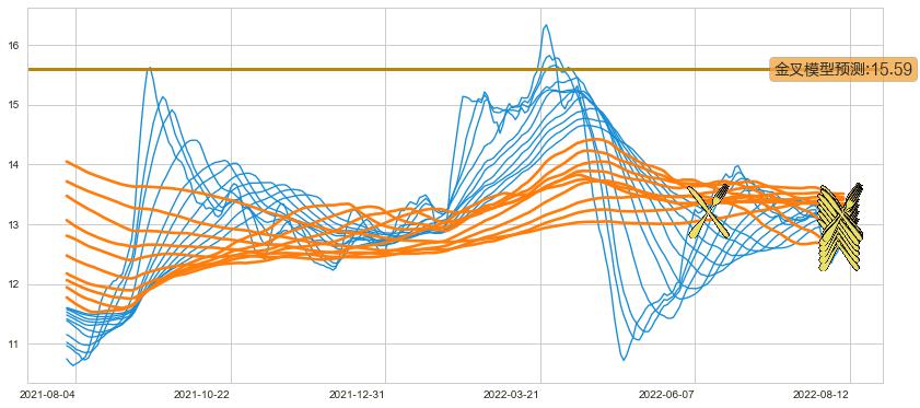 ➣ 40小时均线于(2022-08-11: 13.16)形成【金叉】基于【金叉历史模型】预测金叉后最高波峰价格: 15.60, 金叉后最高价格13.26,尚未达到预测最高波峰价格, 预期继续上涨