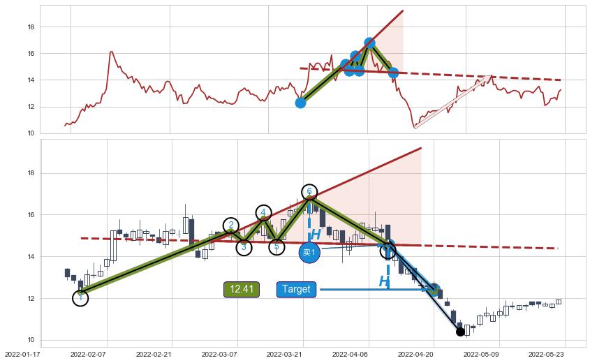 ➣ 【已达成】最小【反转】第一目标价格→(2022-04-20: 12.41 ), 后续继续【反转】下跌动力微弱,下跌较小