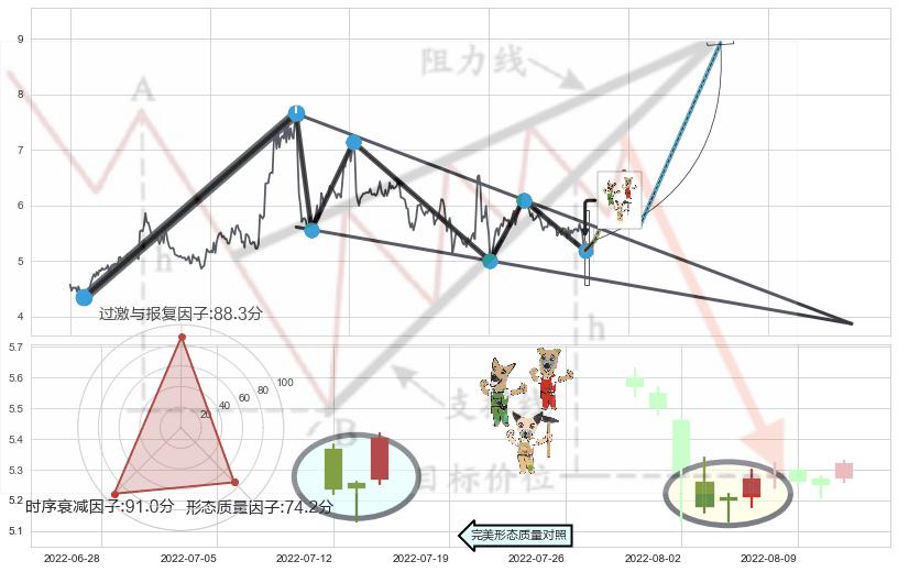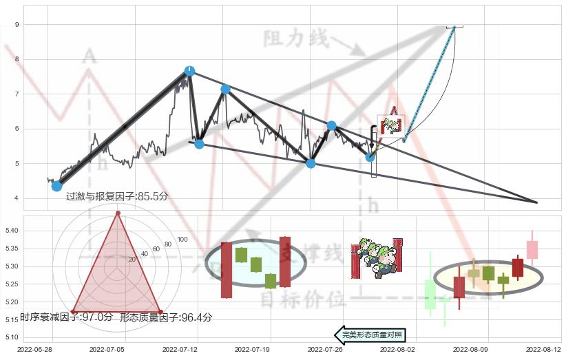 ➢ 🕰 价格走势在2022-08-05至2022-08-11期间形成上升三部曲(升势三鸦),残存影响值:4.86