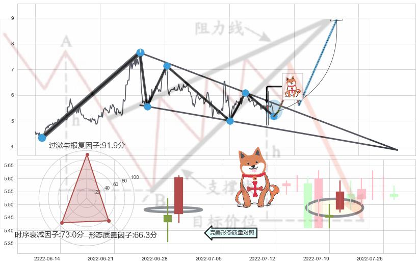 ♘ 阻力价格位6.91,可信任强度58.44%,距离最后交易2022-08-12形成的收盘价格5.37相差 +28.72%
