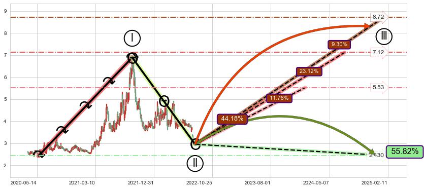 ♘ 支撑价格位2.430,可信任强度97.08%,距离最后交易2022-08-12形成的收盘价格3.090相差 -21.36%