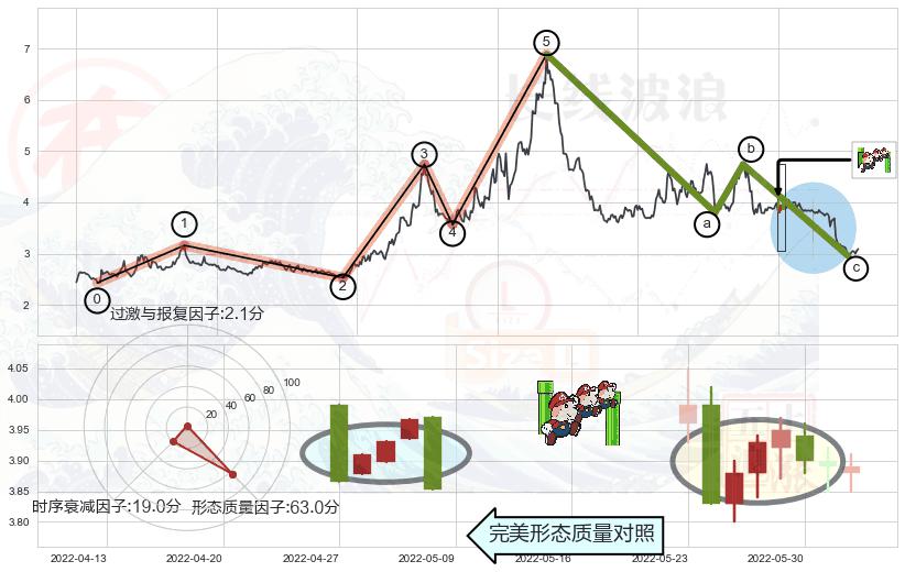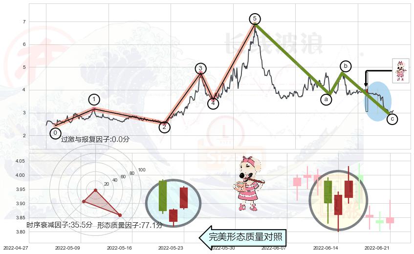➣ 阴包阳形态 + 波浪理论击穿破位C点继续下跌信号叠加后【反向回撤率】偏高,【看空】信号叠加【存续影响降权】