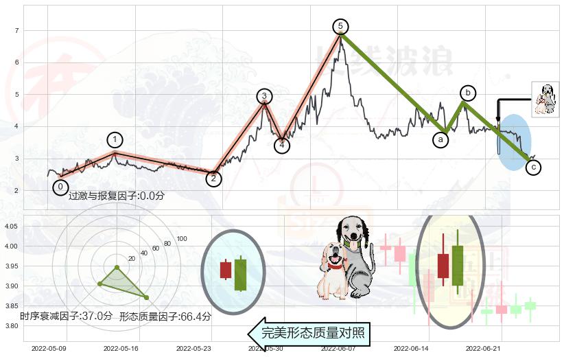 ➢ 阴包阳形态 🔜 波浪理论击穿破位C点继续下跌 综合量化分数:47.43 【中性】
