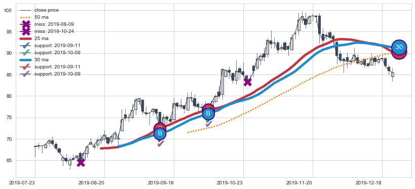 ➢ 最优均线组合共正确确认支撑阻力信号4处,正确确认率 50.00%