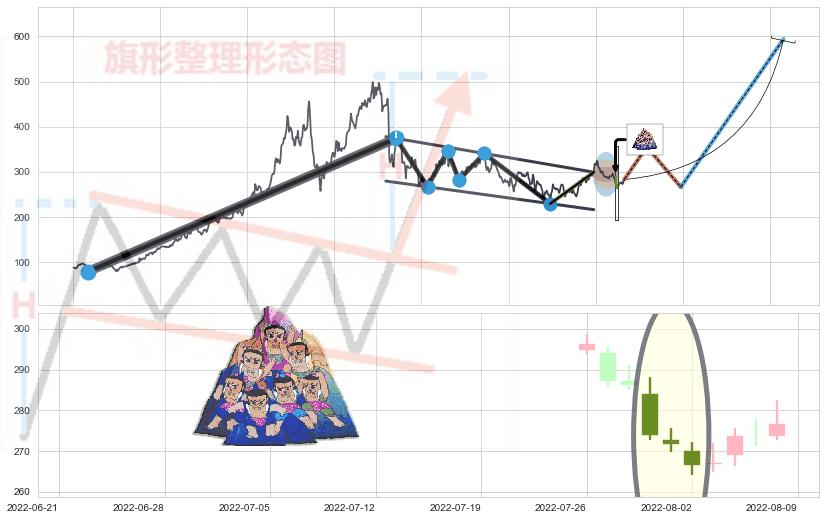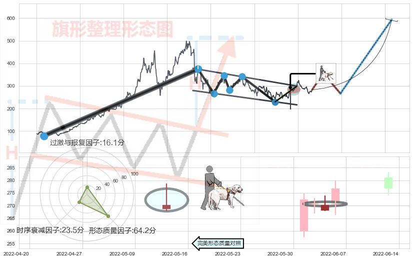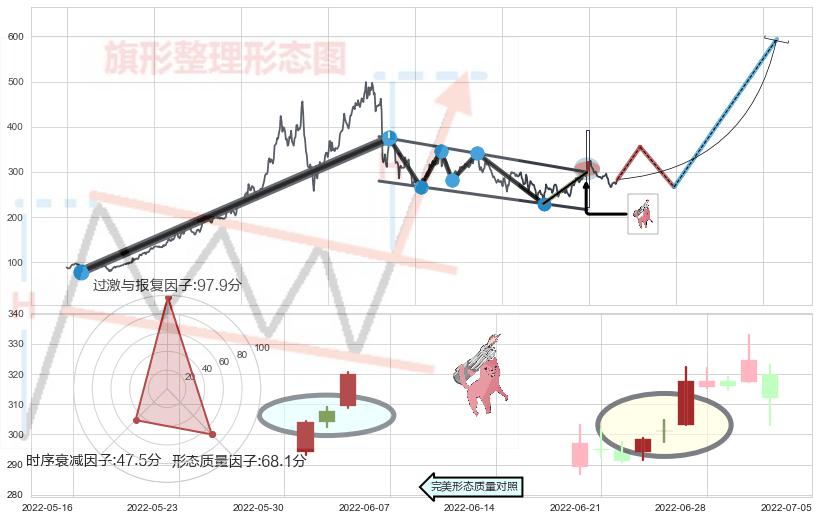 ➢ 【买1】: 激进型 买点 →(2022-06-24: 299.49 )形成突破降⚑旗形【整理】形态