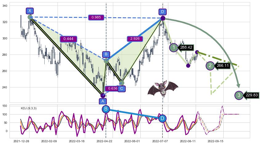 ➣ AI预测: 假定反转继续,第❷价格目标位置(2022-08-30, 266.11)