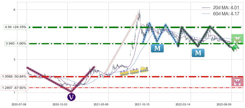 ➢ 【仅预测突破】最后价格:3.980与预测突破价格:4.94→【空间较大】后续最小【整理】第一目标价格→(2022-11-02: 5.98 )