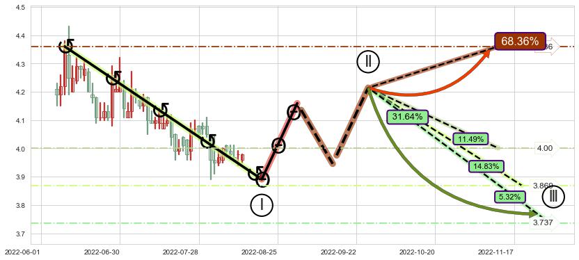 ➢ 【已确认突破】最后价格:3.980与最小【整理】第一目标价格→(2022-08-22: 3.793 )相较: 下跌空间【中等】