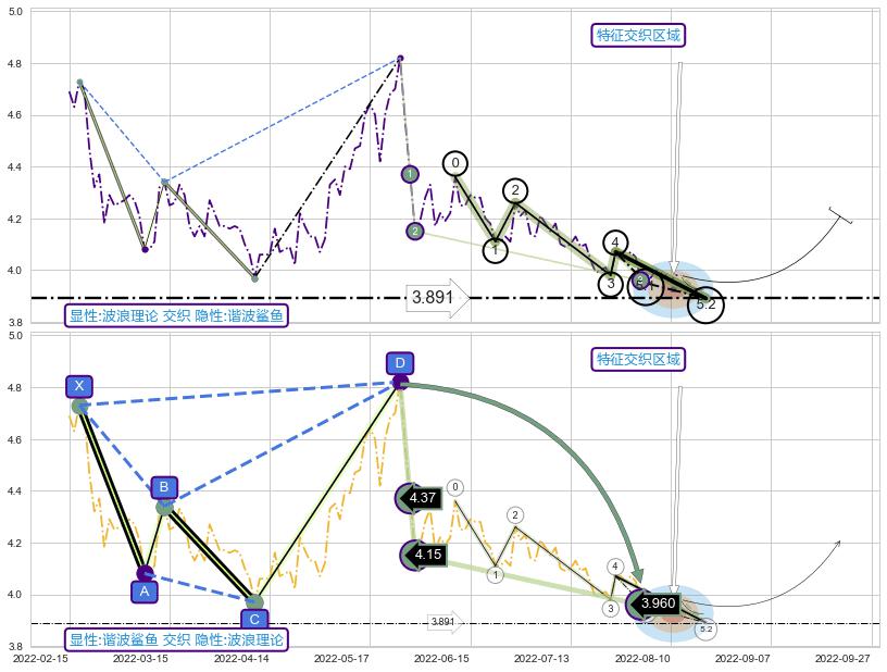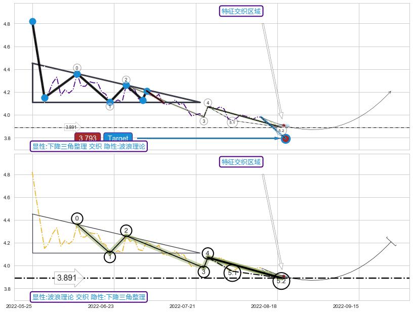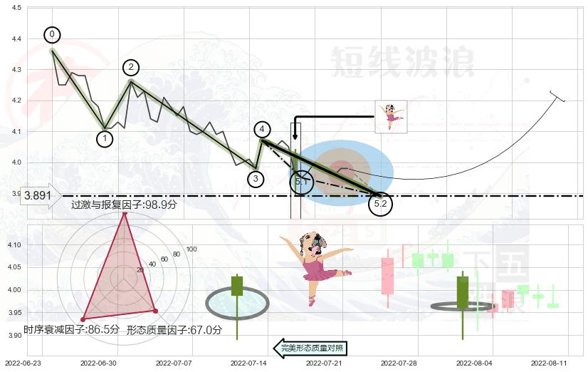 ➣ 5.1: 预测当前第5浪位置(2022-08-03, 3.950),仍然有下跌空间