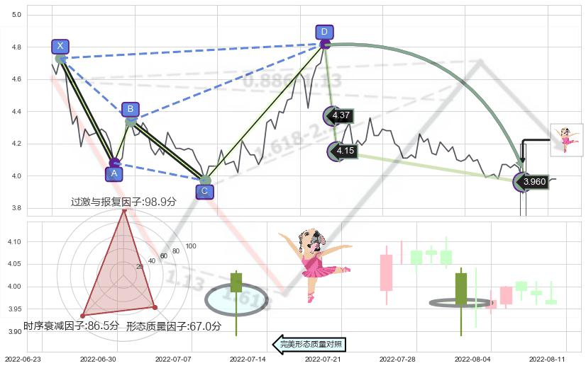 ♘ 阻力价格位4.19,可信任强度57.22%,距离最后交易2022-08-12形成的收盘价格3.980相差 +5.19%