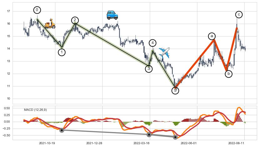 ➢ 波浪理论:猜想达到c点后小反弹终止反转下跌 → 下跌 → 【拐点】临近 → 阶段均值回复结束后继续大周期趋势跟踪